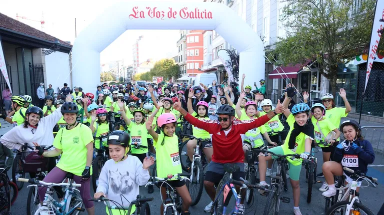 Avelino Barreiro, acompañado da súa familia, recibiu o cariño do Club Ciclista Xiabre na XXVII edición da Marcha Cicloturista Arousá, que quixo destacar a paixón polo ciclismo do Carrilexo, de 85 anos./ Gonzalo Salgado
